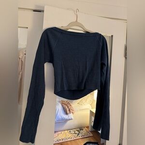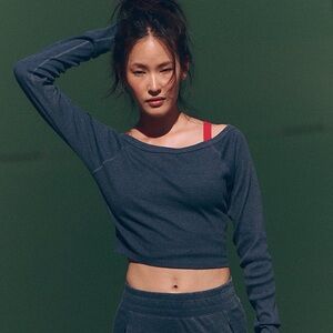 Add a little something stylish to your weekly wardrobe rotation with this super sleek off shoulder top featured in a ribbed knit fabrication with cropped long sleeve top, ready-for-anything look.
