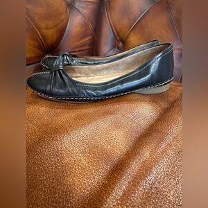 EUC NATURALIZER black flat ballerina leather shoes with white stitches Sz 6