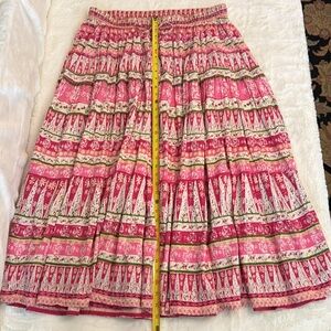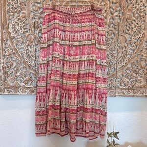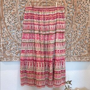 Liz & Me Pink Floral Boho Tiered Maxi Skirt, Elastic Tie Waist- size 0X 14-16W