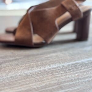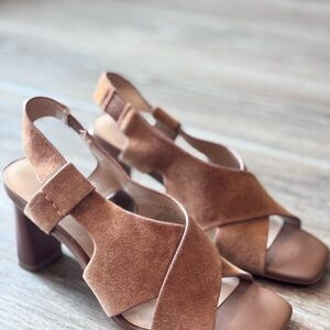 Step out in style with these Banana Republic leather crosso high heals in cognac. Perfect for any occasion, these shoes offer both comfort and sophistication. Soft leather with a stretchy band at the heal providing added comfort.