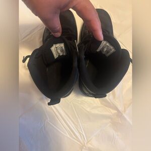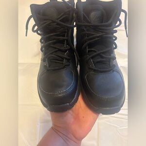 Sleek all-black high-top boots by Nike. Ideal for versatile wear. In good condition