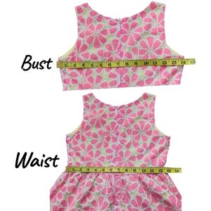 Elegant fit and flare Justice dress , hot pink flowers and neon yellow liner. Scoop Neckline!