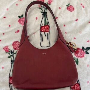 Chic Coach shoulder bag in off-white leather. Sleek design with a stylish touch. Ideal for versatile wear.
