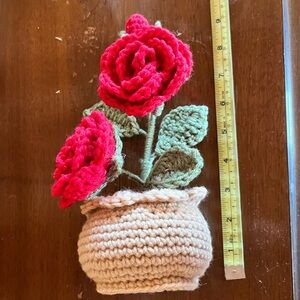 Home decor handcrafted crochet rose arrangement! Not too big, perfect to add accent color to your home.