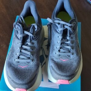 High cushion comfort from Hoka. These shoes are perfect for long distance running or just being on your feet all day. Super cute and comfortable. Basically brand new, have only been worn one time.