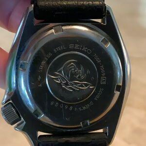 Stylish Seiko divers watch. Black dial with silver accents. Like new, barely worn. SEIKO A1 SCUBA DIVERS Automatic. This is an automatic watch with a diameter of about 42 mm, date, screw-down crown, and bi-rotating bezel. Durable and elegant design.