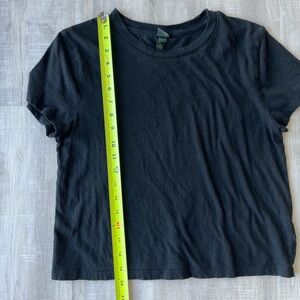 This black crop tee from Wild Fable features a relaxed fit and short sleeves, making it a stylish and comfortable choice for any casual outing. Its solid black color and simple design offer a versatile addition to your wardrobe. (100% cotton) See pictures for measurements.
