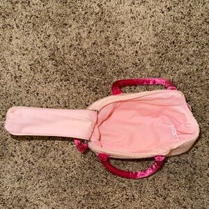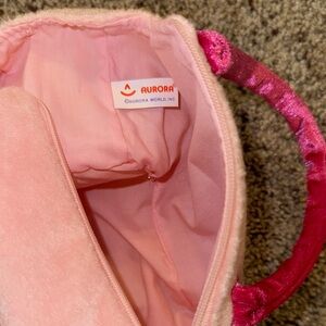 Charming and soft pink plush pet carrier with zip top is perfect for adding a touch of fun to your child’s style. Featuring a delightful complimentary pink embroidered Sweetie on one side with heart and clear pocket for card on other side, your child will love to carry their favorite small plush animal!