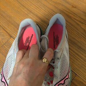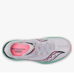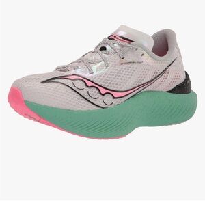 Stylish Saucony Endorphin sneakers. Features mint and pink. Never worn. Carbon plated shoe in perfect condition. No longer have the box they came in.