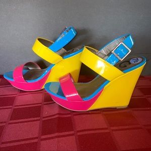 🔥G by Guess Multicolor Pink, Yellow & Blue Wedge Like New 7.5 CUTE! 🌺3xHost Pick