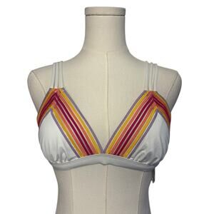 Beach Bunny Triangle Bikini Womens Size Small White Neon Stripes Rushed