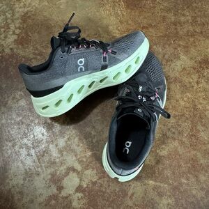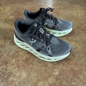 Still new, only worn a few times! Stylish athletic shoes by On Running. Features a breathable gray upper. Unique mint color sole design. Perfect for running and casual wear.