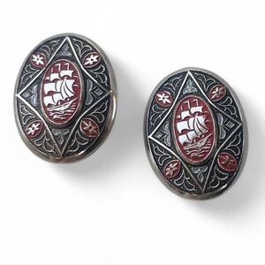 Vintage Orange Floral and Rhinestone Cuff Bracelet Silver Toned