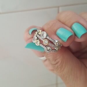 #7.Huitan Vintage Two Tone Luxury Cubic Zirconia Rings