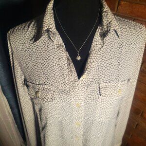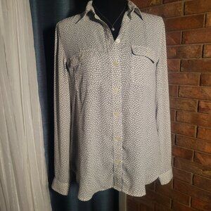 LOFT Women's White Black Abstract Print Button Up Roll Tab Sleeve Blouse - Sz