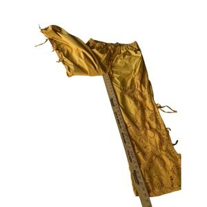 Goldenrod dreams unfold in these ASOS unique pants, where comfort meets intricate design. Imagine the soft, breathable fabric gently draping around you, while the elaborate crochet lace panels add a touch of bohemian flair. The wide-leg silhouette offers freedom of movement, perfect for dancing the night away or simply lounging in style. The adjustable drawstring waist ensures a comfortable and personalized fit. These pants are a statement piece that effortlessly blends comfort and artistry. Picture yourself wearing them to a music festival, a beach bonfire, or a casual brunch with friends.