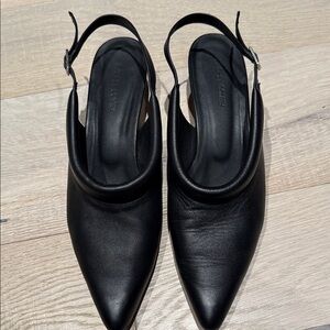 These Tibi pony hair calf print sling back Beryen size 39. Elevate your style with these classic TIBI sandals. Wear with socks in fall and winter and without in summer and fall. Enjoy endless compliments. Note! The left shoe doesn’t have a black strap to hold the buckling strap. I’ve never even realized this until someone here pointed it out. I always wore them w/o noticing or considering.
