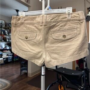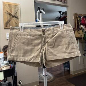 These tan cargo shorts from American Eagle Outfitters offer a relaxed fit and a versatile style, perfect for casual outings. Made from a comfortable cotton blend, they feature a classic knee-length design that pairs well with various tops.