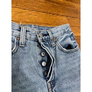 Levis 501 S Skinny Button Fly Dark Wash Blue Denim Jeans Womens Size 24 (24x27)