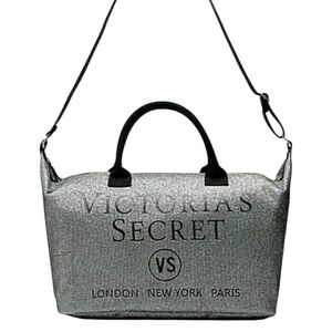 Victoria's Secret Metallic Silver Weekender Duffel Bag/Gum Bag