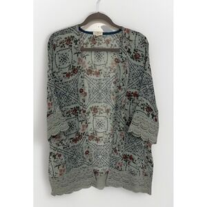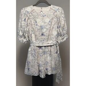 Turquoise Haven Tan Floral Print Tunic Blouse Bell Sleeve Size L Style Your Life