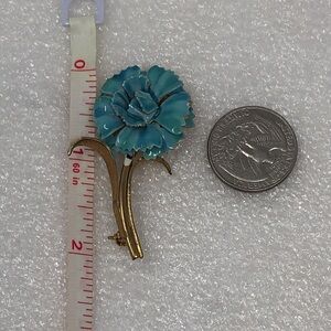 Vintage Brooch Blue & Gold Tone Carnation Flower