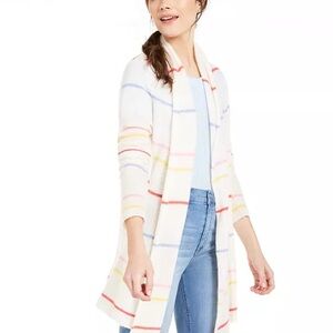 • Color: A rich mix of purple, rust, and gold tones in a plaid-like ribbed knit
