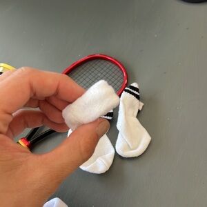 Great condition tennis bundle from pleasant company aka American girl. Vintage: a few marks on the bloomers that hold the balls, cool feature. Tennis racket might have a few small marks (see photos) and the hat needs reshaping. All still great condition though, all three balls available. Collectibles, see all pics and review carefully and ask questions