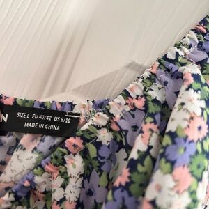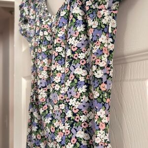 SHEIN Blue and Pink Ruched Puff Sleeve Mini Dress