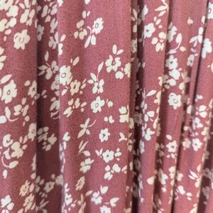 Chic floral maxi dress with a flattering V-neck. Burgundy color with delicate white floral pattern. Ideal for casual or formal events.