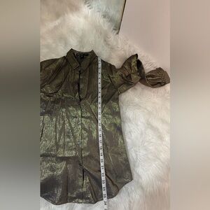 Excellent condition. Button down. Cotton/Silk/Metallic blend. Shine in style with this metallic gold women's top. Perfect for adding a touch of glamour to any outfit.
