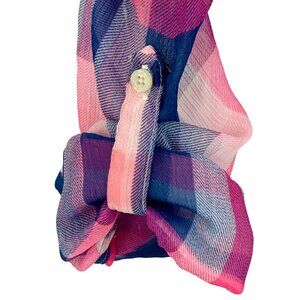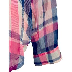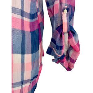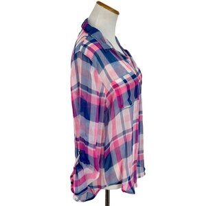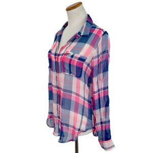 Hollister 2016 Pink & Blue Sheer Plaid Button-Up & Roll Cuffs Casual Relaxed Top