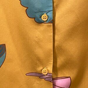 Psophia (Vazquez de Castro) Rare Find Button Down Tropical Blouse, Yellow - L