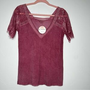 Wool Hemp and Polyester blend tee in a marled space dye dusty purple. Color doesn't photograph well, lighter in color than the first two images.