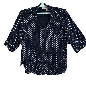 White Stag Womens White Polka Dot Stretch Blouse 3/4 Sleeve Button-Up SZ 26W/28W