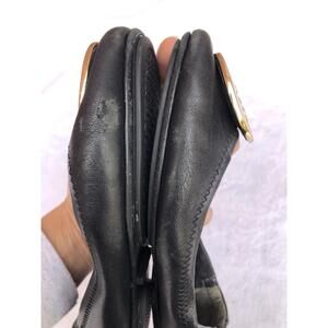 Tory Burch Minnie Travel Ballet Flats Black Leather Size 6 M Gold Style 50393