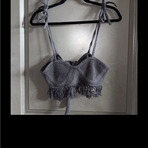 Stylish black skirt set with fringe details. Perfect for a chic and modern look.MRSP bra is $165 skirt $295
