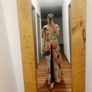 Flaws include unhemming of the front mid him - does not impact wearing and a small hole in the front as pictured. Otherwise EUC. See photos for measurements.