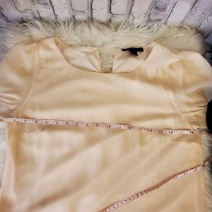 Atmosphere dress featuring long sheer sleeves, button detail on sleeves and button closure on the back. Light cream/beige color. Fully lined. Good pre-owned condition. Size 8. Approx measurements shown in photos.