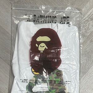 White short sleeve tee with iconic camo ape head graphic. Bold and stylish design.