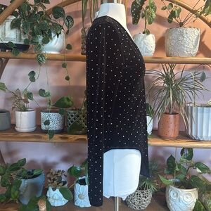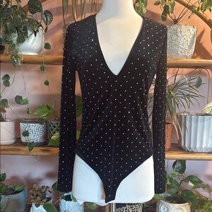 H&M V-Neck Black Velour Studded Long Sleeve Bodysuit Size Medium