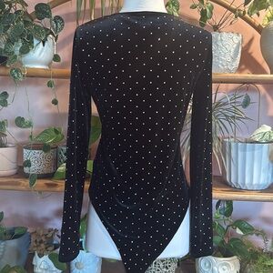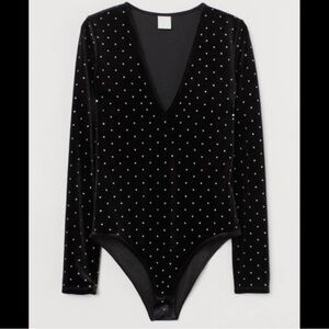 H&M Black Velour Studded Long Sleeve Bodysuit Size Medium