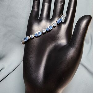 Gorgeous vintage 1950s Weiss rhinestone bracelet featuring brilliant blue prong-set crystals in marquise, round, and emerald cuts. Set in a silver-tone base metal with a secure fold-over clasp. The stones are vibrant and intact, showcasing the quality Weiss was known for. No missing stones. A classic Mid-Century piece perfect for collectors or formal wear. Tags: vintage bracelet, Weiss jewelry, rhinestone bracelet, blue crystal bracelet, 1950s jewelry, retro sparkle, mid-century style, vintage fashion, costume jewelry, formal bracelet, collectible jewelry, glam accessories, bridal, marquisem signed, simple single strand, mermaid core, jewel tone, Thanksgiving party, dinner party accessories, Christmas gift