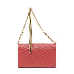 Yves Saint Laurent Shoulder Bag Classic Cassandre Chain Wallet in Red Quilted Grain de Poudre Leather and Gold hardware. The product is in Excellent Condition (A).