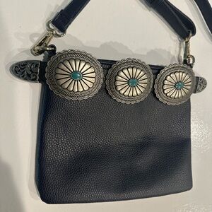 Navy Leather Crossbody with western conchos