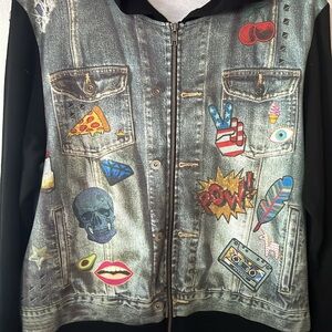 Terez Black Zip Up Hoodie Jacket with Graphic 80’s- 90’s Design. Size Medium
