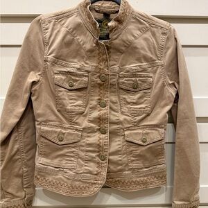 Stylish brown leather belt featuring silver studs and a decorative buckle. Shortest hole to buckle tong is 32” and last hole(loosest) is 36”.