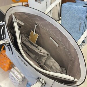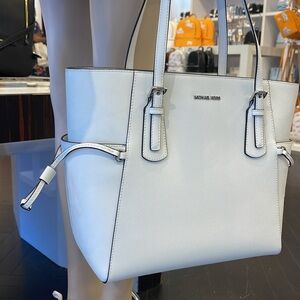MICHAEL KORS Voyager Larg Saffiano Leather EW Tote Shoulder Bag Optic White NWT