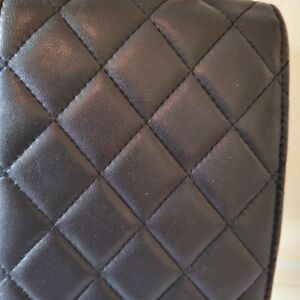 Crafted with luxurious black leather, the CHANEL big xl Quilted Phone Holster combines elegance with functionality. Its iconic diamond quilting and gold-tone CC logo make it a timeless accessory for your mobile device. Designed for convenience, this sleek holster ensures your phone is always within reach.