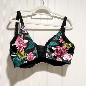 CACIQUE BRA pretty floral SIZE 36H like new UNDERWIRE black with pink & green